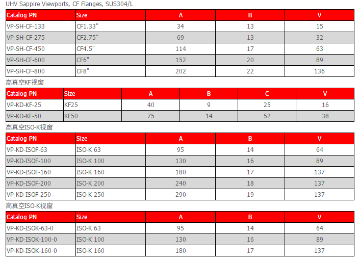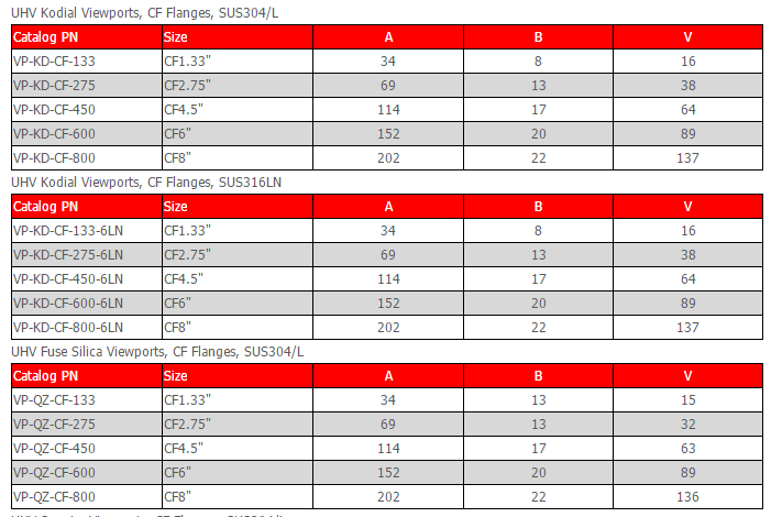 提供全系列高真空至超高真空的視窗產品
